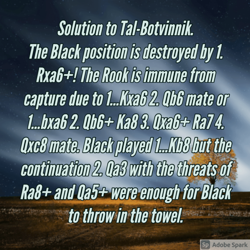Diamond Dust. Chess Tactics! Posted byformermailmanOctober 1, 2021September 17, 2021Posted inTacticsTags:Chess combinations, Chess problems, Chess tactics, Grandmaster games, Master Chess Games, Tactics World Championship 1960. Game 16 Share this: Click to share on X (Opens in new window) X Click to share on Facebook (Opens in new window) Facebook Click to share on LinkedIn (Opens in new window) LinkedIn Like Loading... Related
