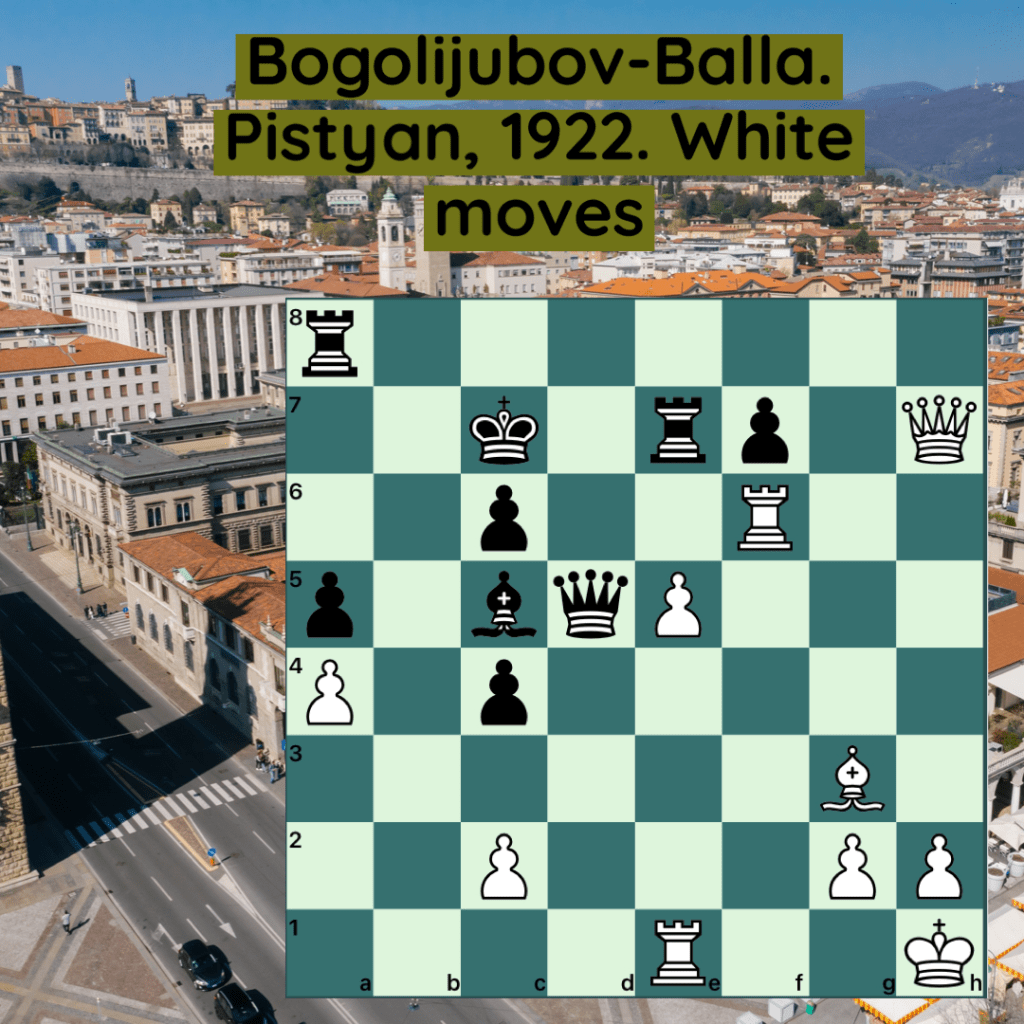 Diamond Dust Posted byformermailmanNovember 12, 2022Posted inTacticsTags:Chess combinations, Chess problems, Chess tactics, Tactics Share this: Click to share on X (Opens in new window) X Click to share on Facebook (Opens in new window) Facebook Click to share on LinkedIn (Opens in new window) LinkedIn Like Loading... Related