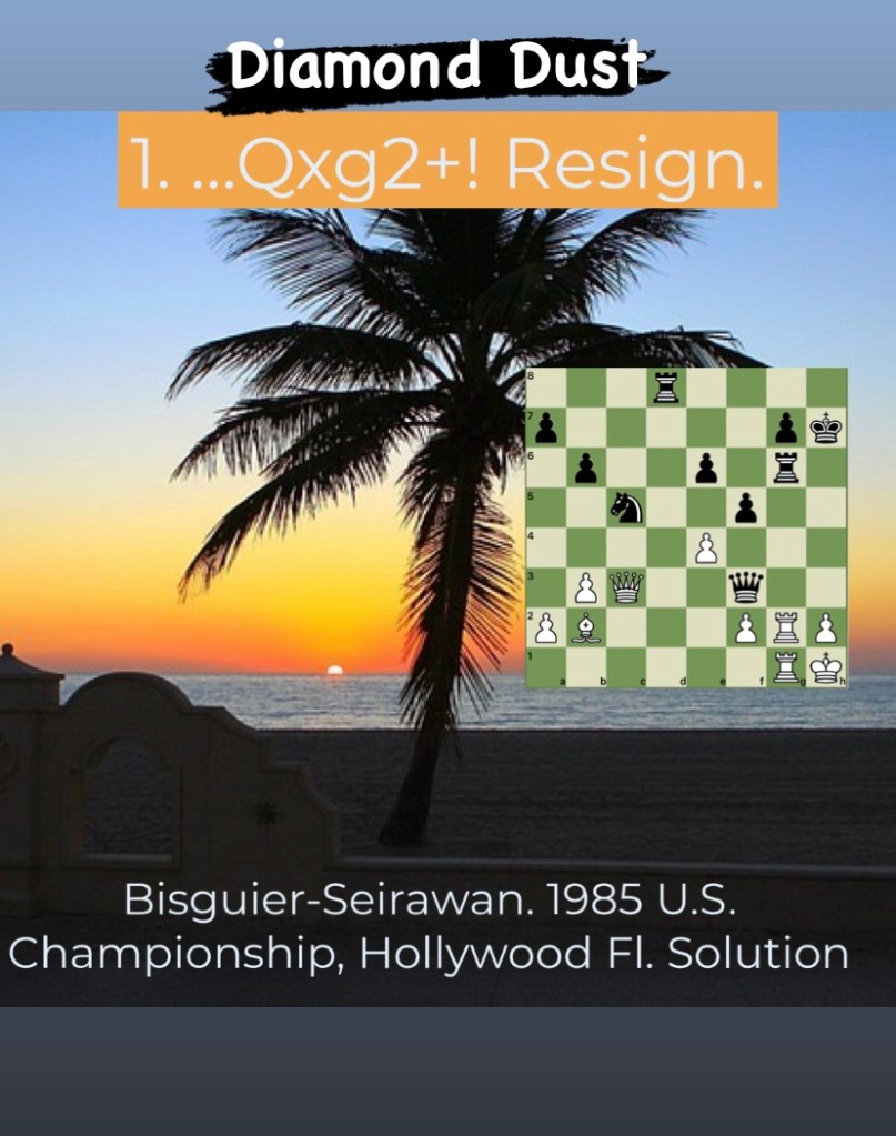 Diamond Dust Posted byformermailmanJuly 8, 2023Posted inTacticsTags:Chess combinations, Chess problems, Chess tactics, Tactics Share this: Click to share on X (Opens in new window) X Click to share on Facebook (Opens in new window) Facebook Click to share on LinkedIn (Opens in new window) LinkedIn Like Loading... Related