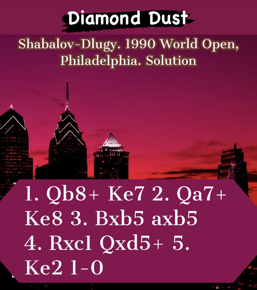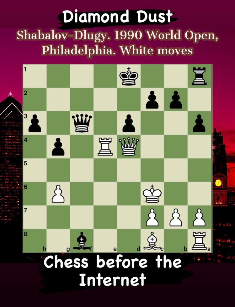 Diamond Dust Posted byformermailmanJuly 10, 2023Posted inTacticsTags:Chess combinations, Chess problems, Chess tactics, Tactics Share this: Click to share on X (Opens in new window) X Click to share on Facebook (Opens in new window) Facebook Click to share on LinkedIn (Opens in new window) LinkedIn Like Loading... Related