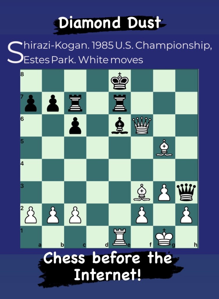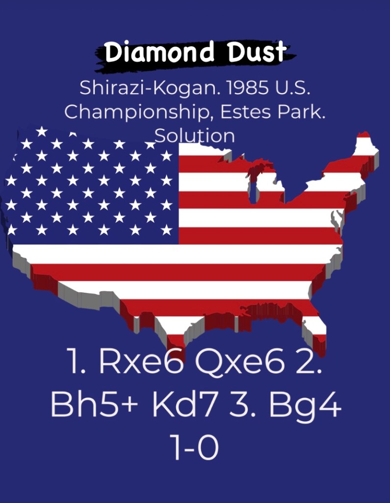 Diamond Dust Posted byformermailmanJuly 14, 2023Posted inTacticsTags:Chess combinations, Chess problems, Chess tactics, Tactics Share this: Click to share on X (Opens in new window) X Click to share on Facebook (Opens in new window) Facebook Click to share on LinkedIn (Opens in new window) LinkedIn Like Loading... Related