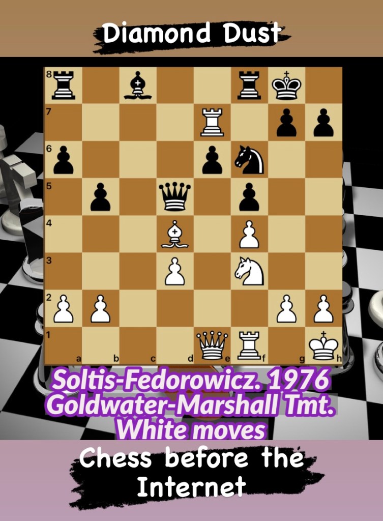 Diamond Dust Posted byformermailmanJuly 26, 2023Posted inTacticsTags:Chess combinations, Chess problems, Chess tactics, Tactics Share this: Click to share on X (Opens in new window) X Click to share on Facebook (Opens in new window) Facebook Click to share on LinkedIn (Opens in new window) LinkedIn Like Loading... Related