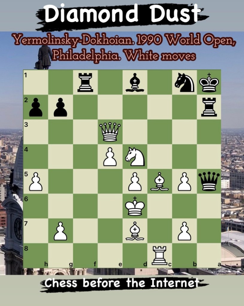 Diamond Dust Posted byformermailmanAugust 11, 2023Posted inTacticsTags:Chess combinations, Chess problems, Chess tactics, Tactics Share this: Click to share on X (Opens in new window) X Click to share on Facebook (Opens in new window) Facebook Click to share on LinkedIn (Opens in new window) LinkedIn Like Loading... Related
