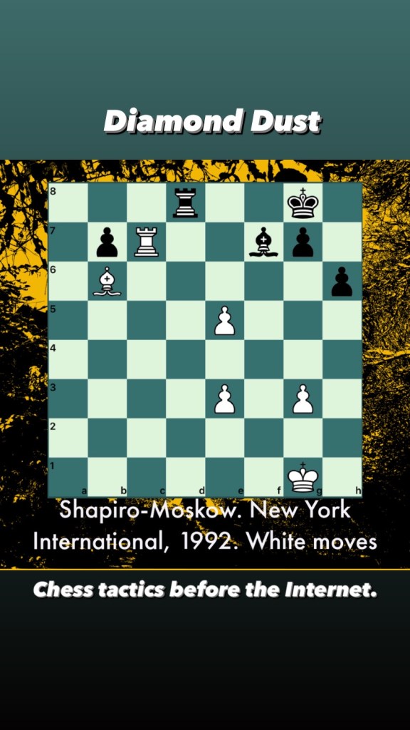 Diamond Dust Posted byformermailmanSeptember 15, 2023Posted inTacticsTags:Chess combinations, Chess problems, Chess tactics, Tactics Share this: Click to share on X (Opens in new window) X Click to share on Facebook (Opens in new window) Facebook Click to share on LinkedIn (Opens in new window) LinkedIn Like Loading... Related