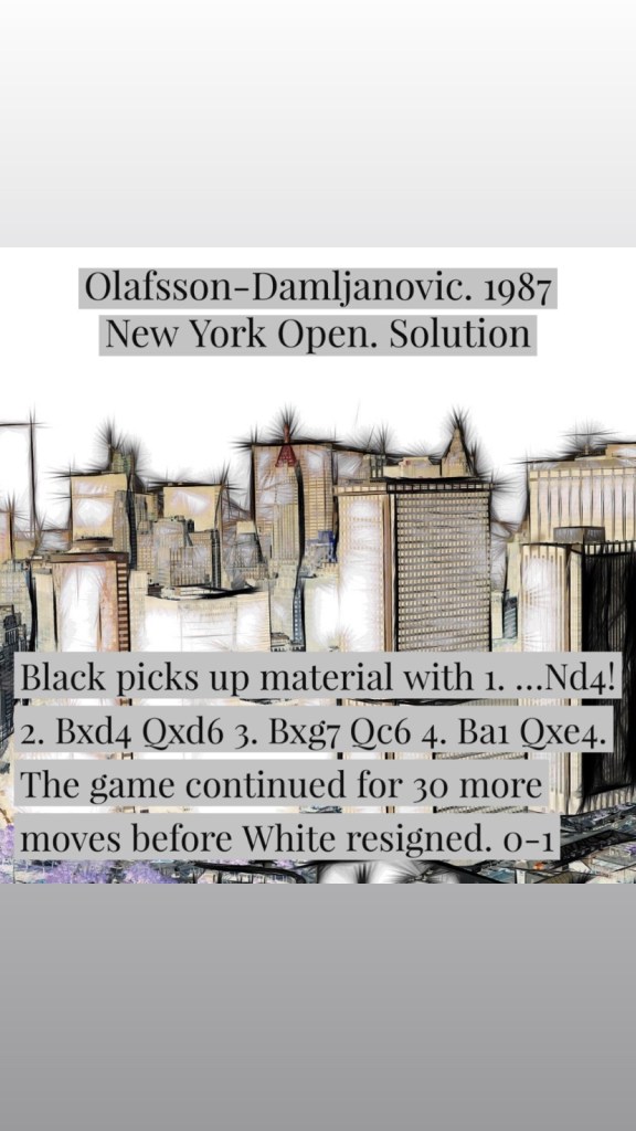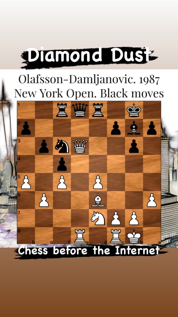 Diamond Dust Posted byformermailmanOctober 8, 2023Posted inTacticsTags:Chess combinations, Chess problems, Chess tactics, Tactics Share this: Click to share on X (Opens in new window) X Click to share on Facebook (Opens in new window) Facebook Click to share on LinkedIn (Opens in new window) LinkedIn Like Loading... Related