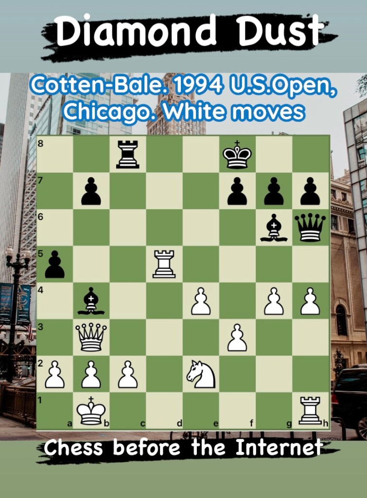 Diamond Dust Posted byformermailmanOctober 22, 2023Posted inTacticsTags:Chess combinations, Chess problems, Chess tactics, Tactics Share this: Click to share on X (Opens in new window) X Click to share on Facebook (Opens in new window) Facebook Click to share on LinkedIn (Opens in new window) LinkedIn Like Loading... Related