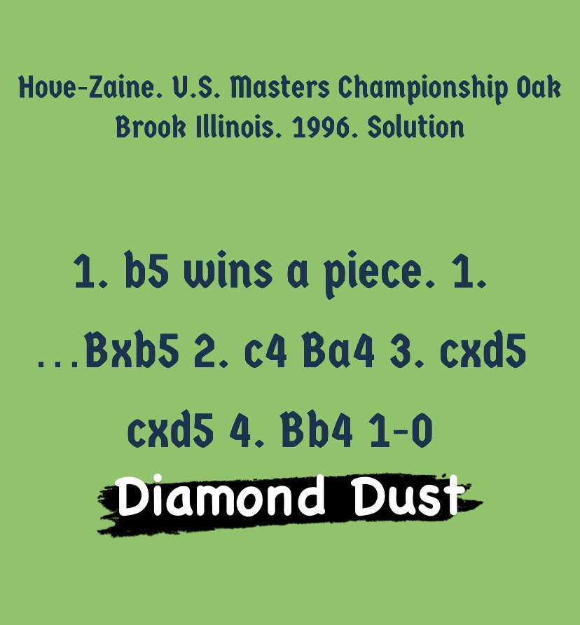 Diamond Dust Posted byformermailmanNovember 1, 2023Posted inTacticsTags:Chess combinations, Chess problems, Chess tactics, Tactics Share this: Click to share on X (Opens in new window) X Click to share on Facebook (Opens in new window) Facebook Click to share on LinkedIn (Opens in new window) LinkedIn Like Loading... Related