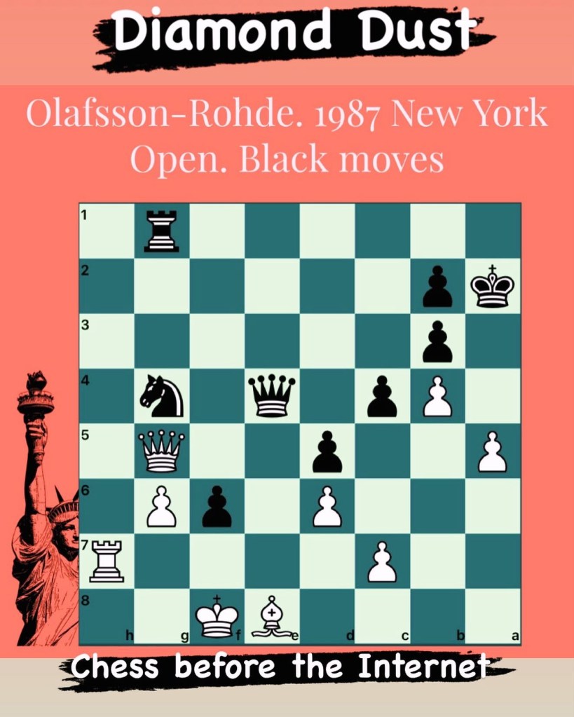 Diamond Dust Posted byformermailmanNovember 14, 2023Posted inTacticsTags:Chess combinations, Chess problems, Chess tactics, Tactics Share this: Click to share on X (Opens in new window) X Click to share on Facebook (Opens in new window) Facebook Click to share on LinkedIn (Opens in new window) LinkedIn Like Loading... Related