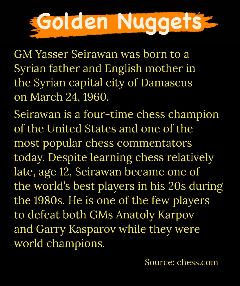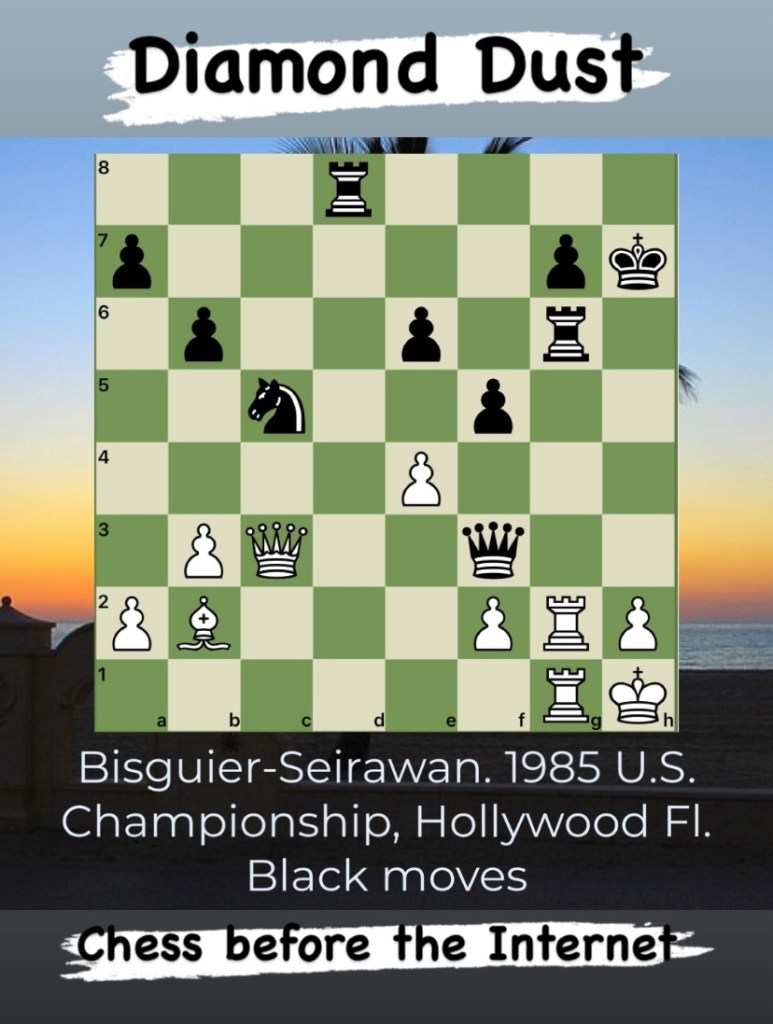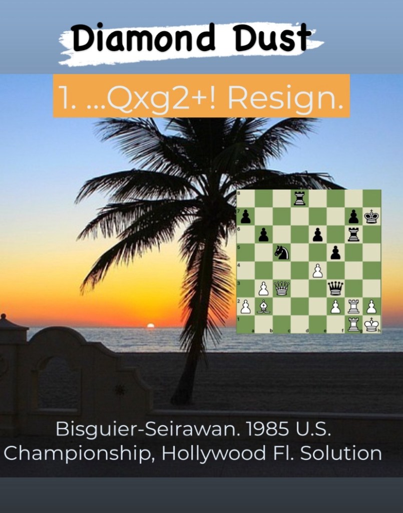 Diamond Dust Posted byformermailmanNovember 29, 2023Posted inTacticsTags:Chess combinations, Chess problems, Chess tactics, Tactics Share this: Click to share on X (Opens in new window) X Click to share on Facebook (Opens in new window) Facebook Click to share on LinkedIn (Opens in new window) LinkedIn Like Loading... Related
