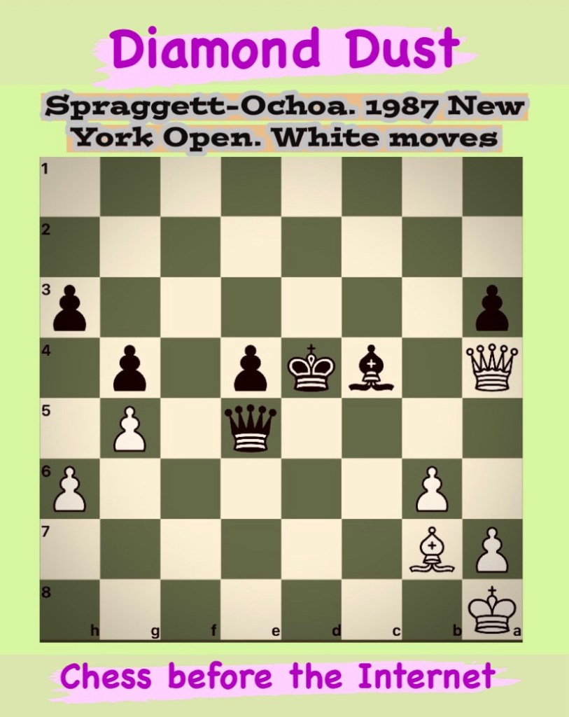Diamond Dust Posted byformermailmanJanuary 9, 2024Posted inTacticsTags:Chess combinations, Chess problems, Chess tactics, Tactics *Note* Algebraic coordinates were inadvertently reversed. Share this: Click to share on X (Opens in new window) X Click to share on Facebook (Opens in new window) Facebook Click to share on LinkedIn (Opens in new window) LinkedIn Like Loading... Related