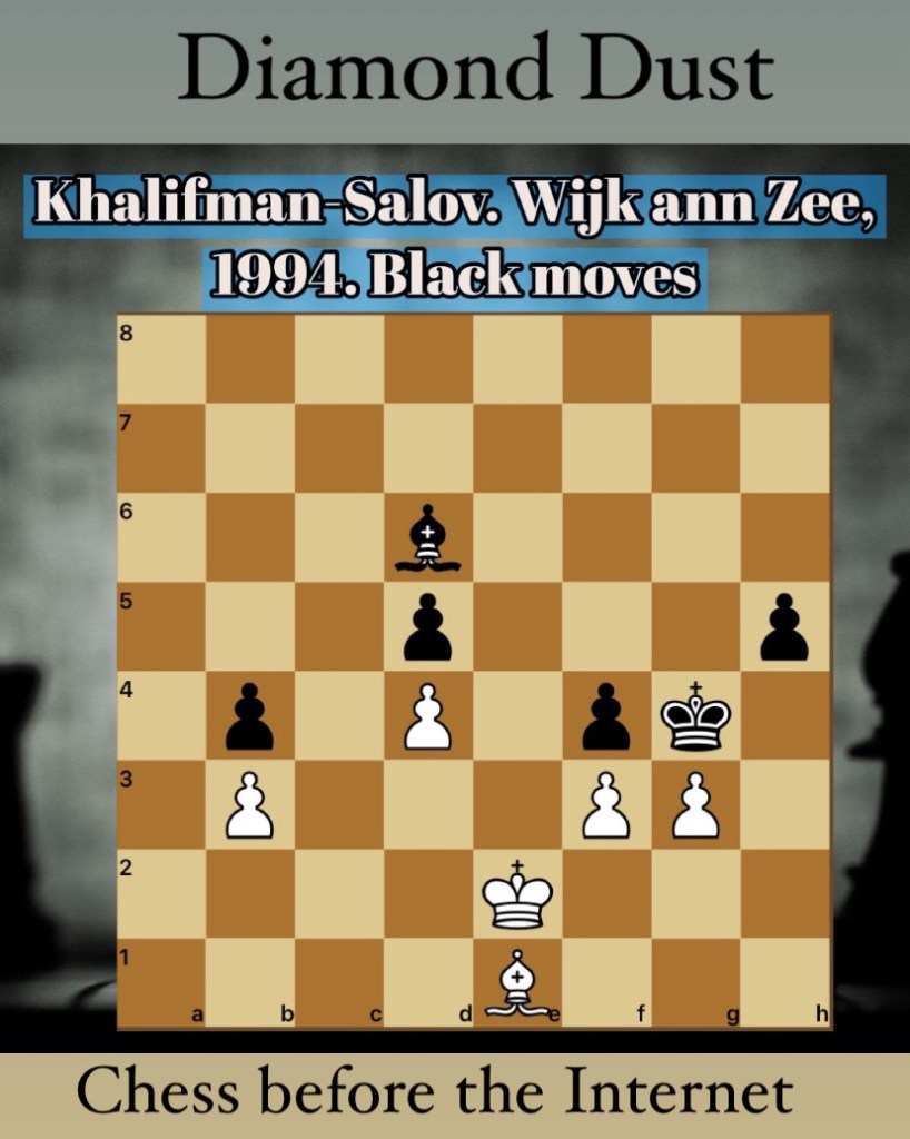 Diamond Dust Posted byformermailmanJanuary 22, 2024Posted inTacticsTags:Chess combinations, Chess problems, Chess tactics, Tactics Share this: Click to share on X (Opens in new window) X Click to share on Facebook (Opens in new window) Facebook Click to share on LinkedIn (Opens in new window) LinkedIn Like Loading... Related