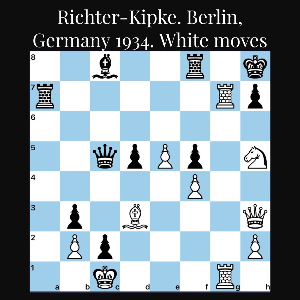 Diamond Dust Posted byformermailmanSeptember 1, 2024Posted inTacticsTags:Chess combinations, Chess tactics, Tactics Share this: Click to share on X (Opens in new window) X Click to share on Facebook (Opens in new window) Facebook Click to share on LinkedIn (Opens in new window) LinkedIn Like Loading... Related
