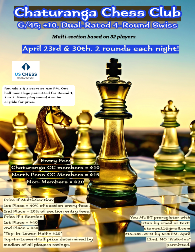 Next Tournament Posted byformermailmanApril 18, 2025Posted inTacticsTags:chess alert Share this: Click to share on X (Opens in new window) X Click to share on Facebook (Opens in new window) Facebook Click to share on LinkedIn (Opens in new window) LinkedIn Like Loading... Related