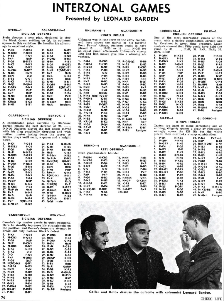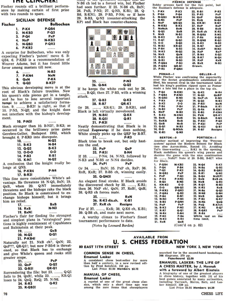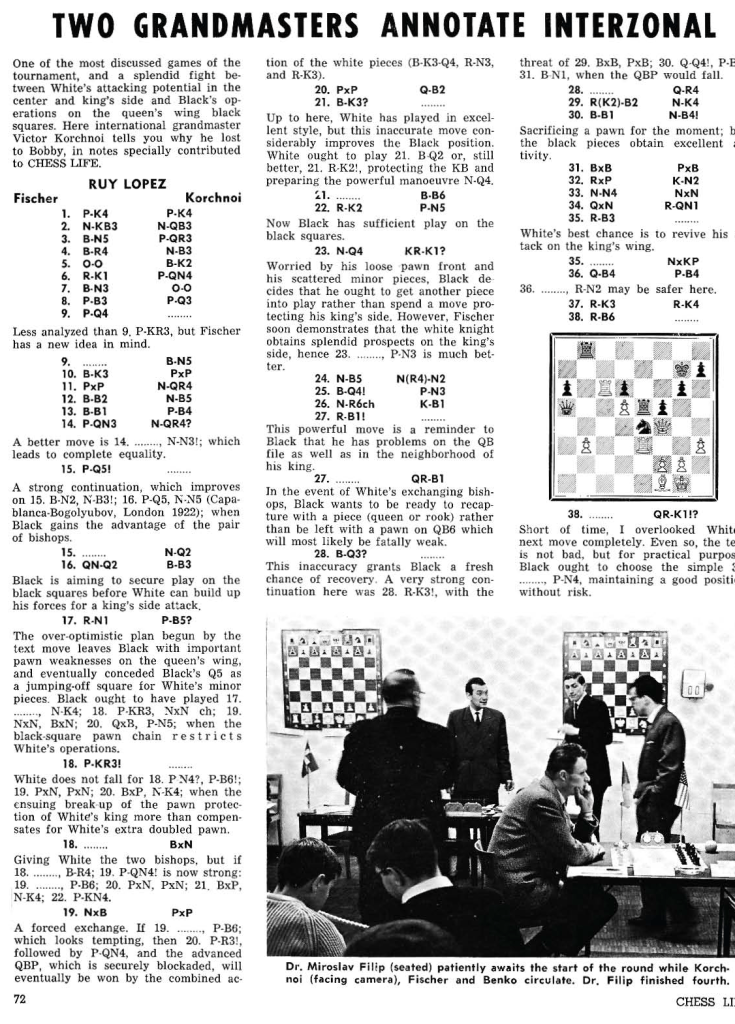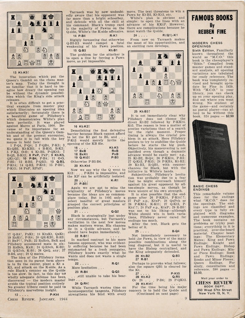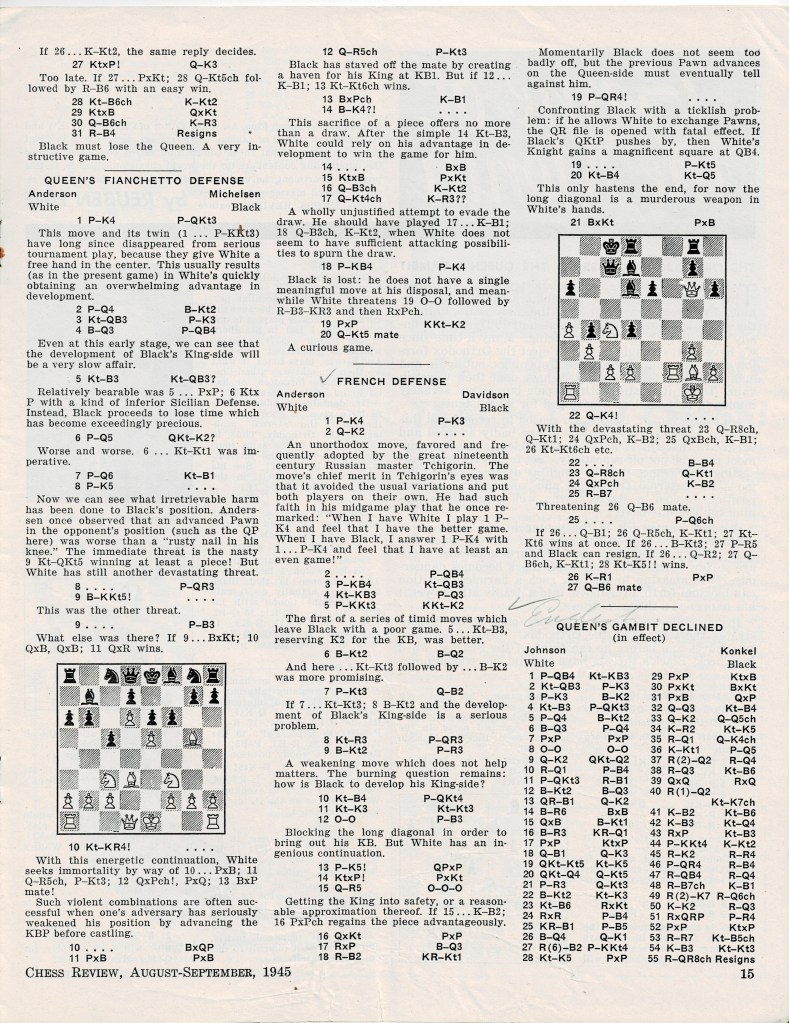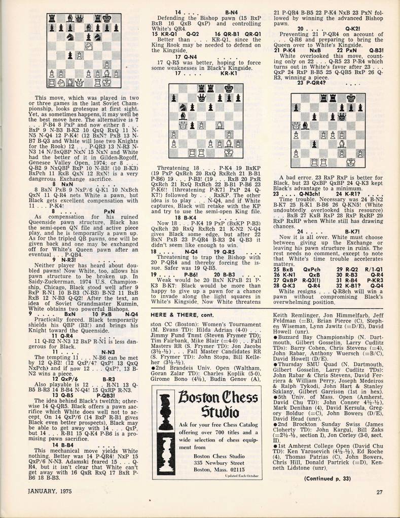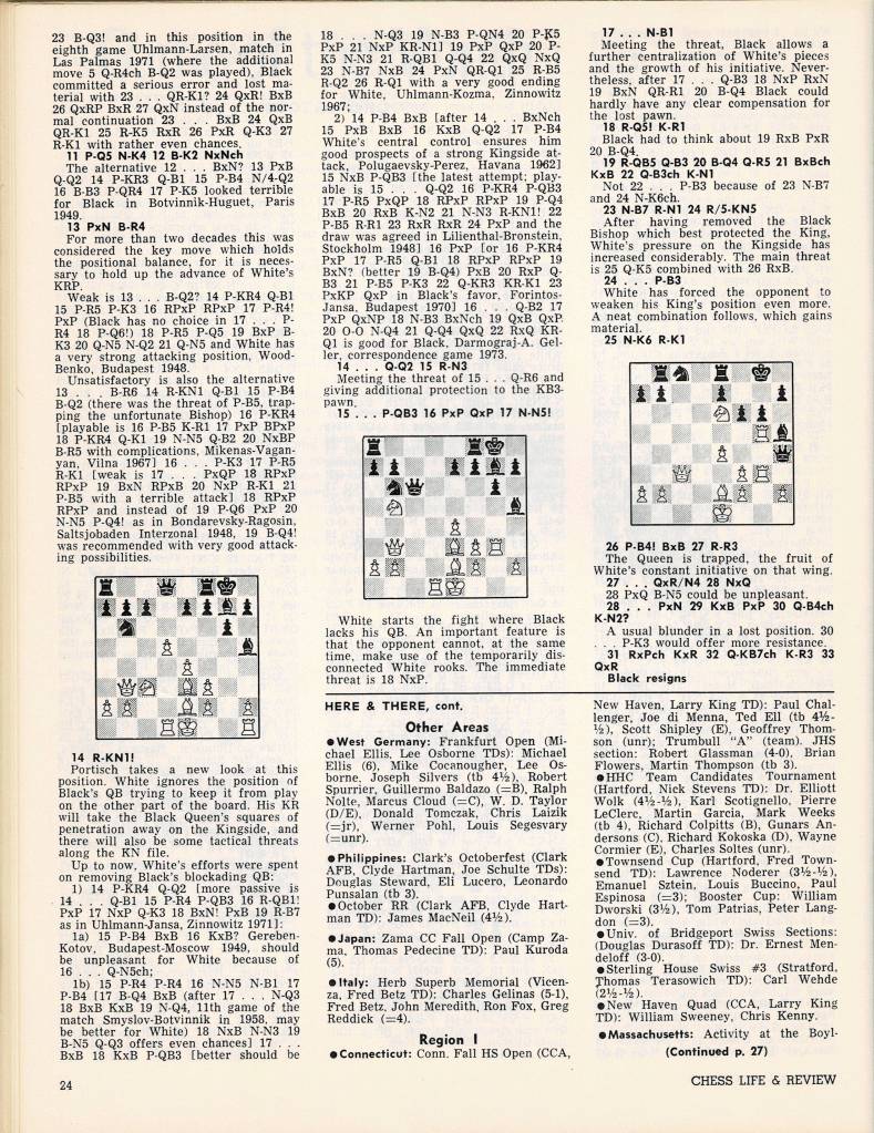 Annotated games and Instruction from the January 1975 Chess Life & Review and the July 1936 British Magazine Chess.