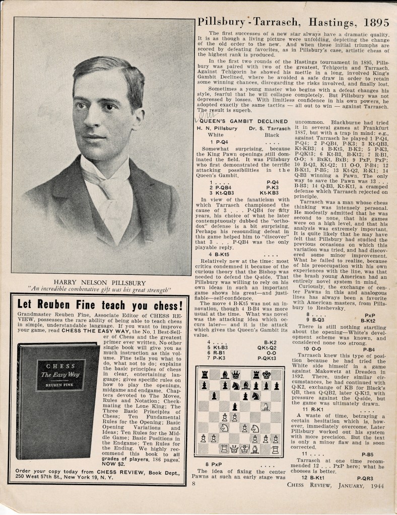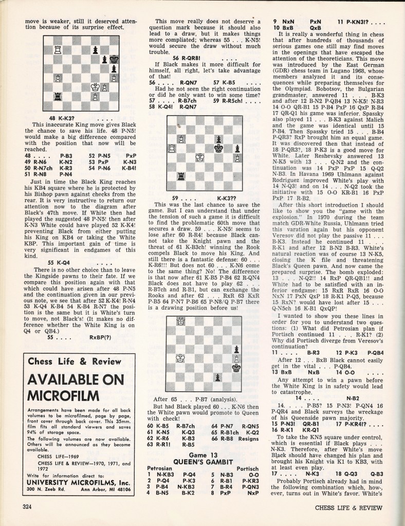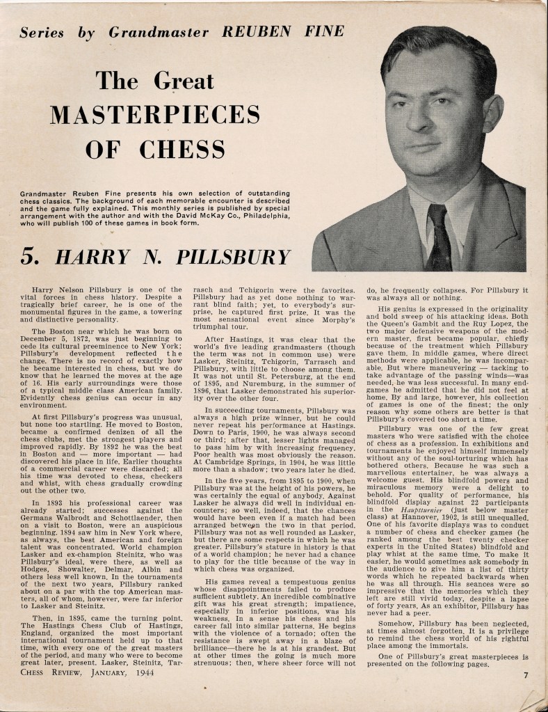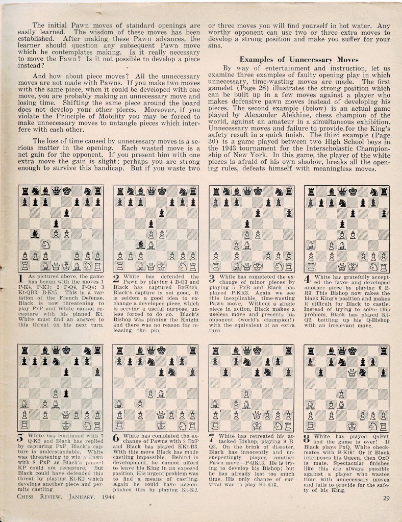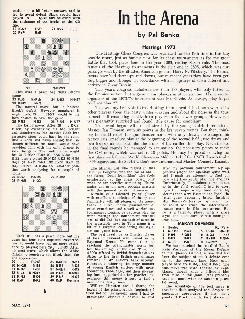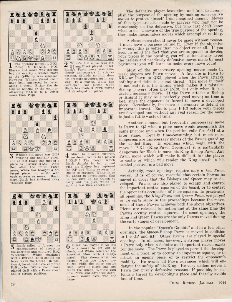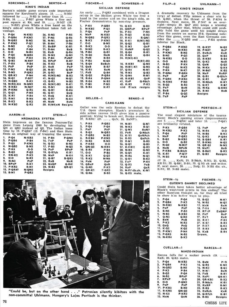 Annotated games and Instruction from the January 1975 Chess Life & Review and the July 1936 British Magazine Chess.