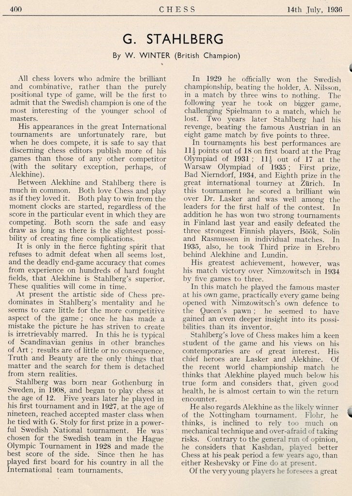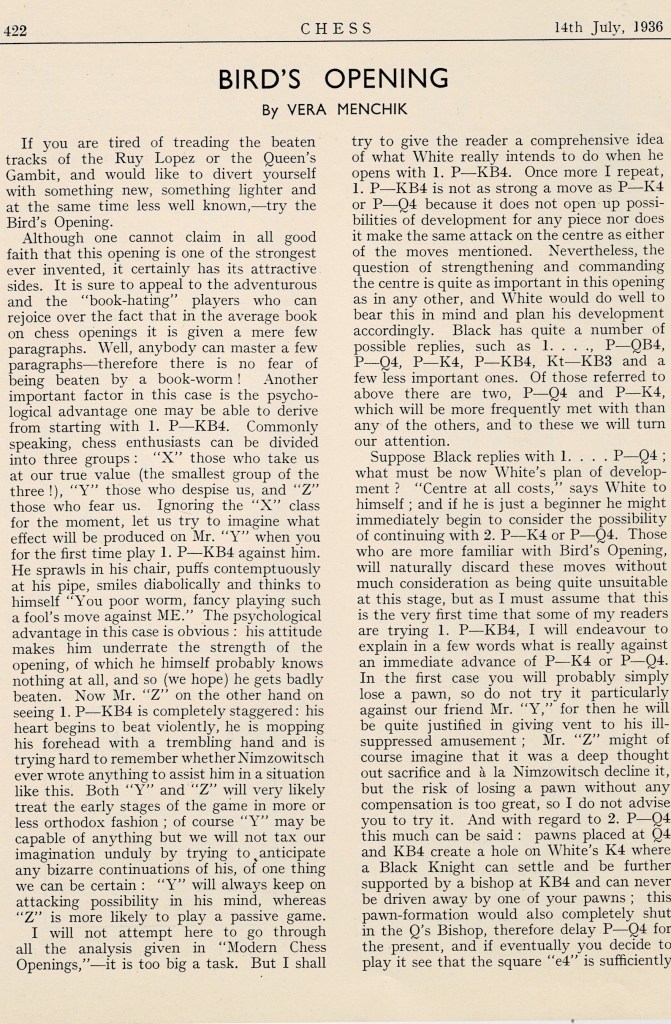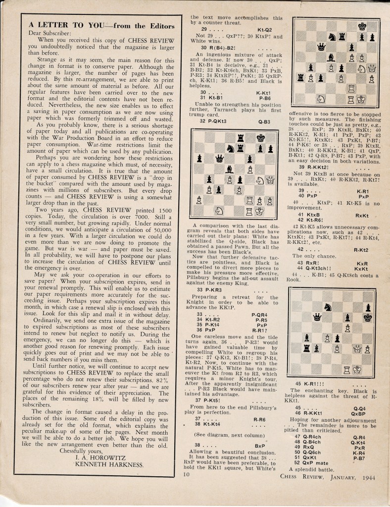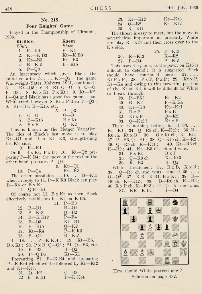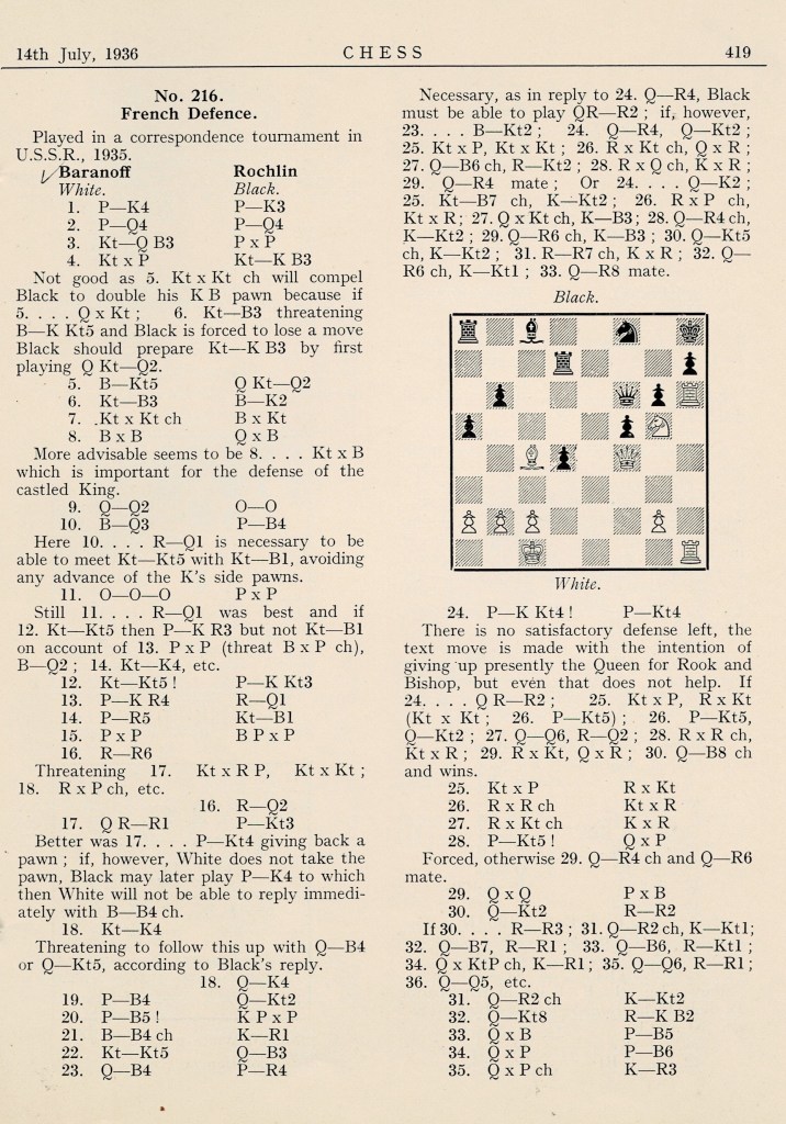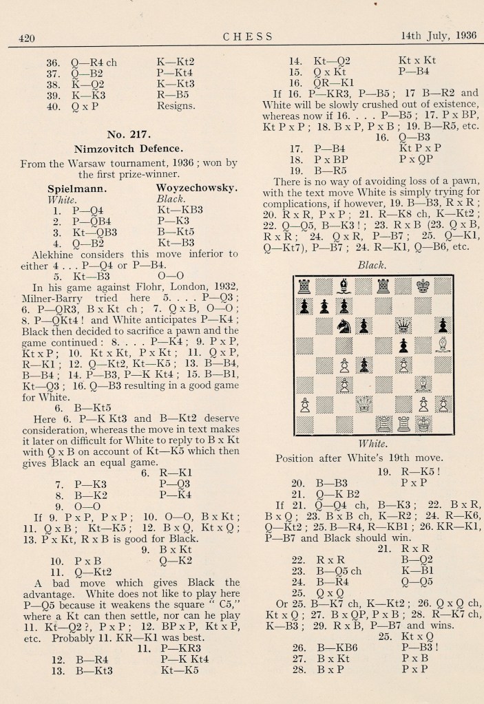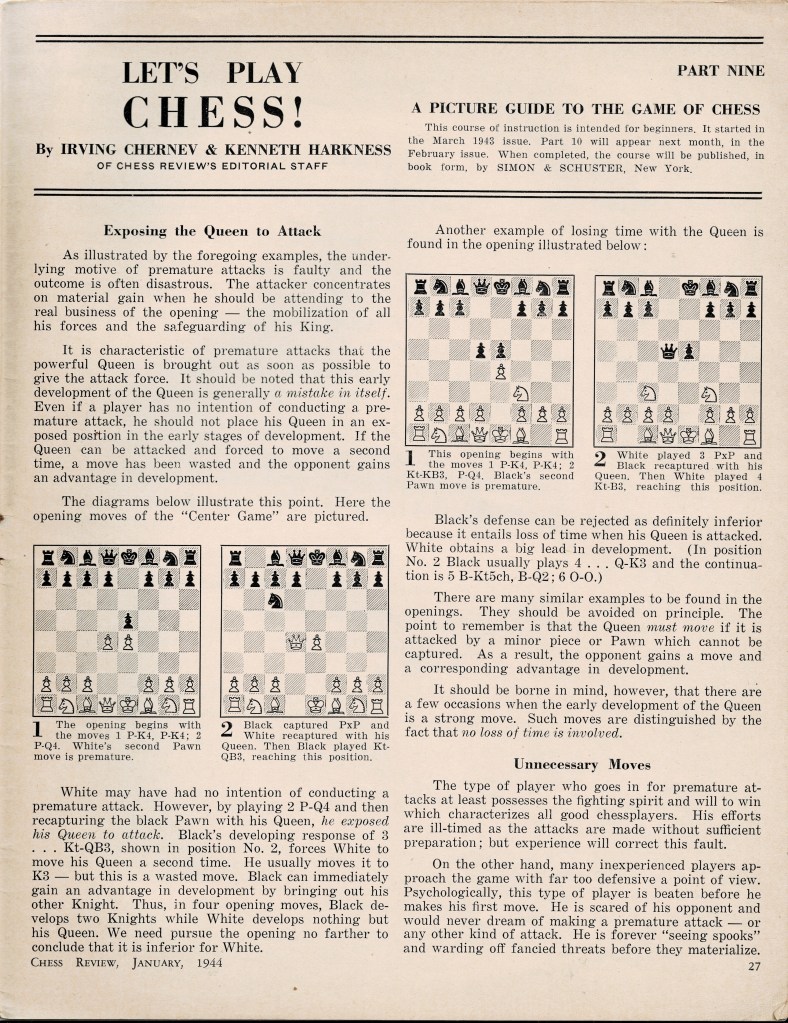 Annotated games and Instruction from the January 1975 Chess Life & Review and the July 1936 British Magazine Chess.