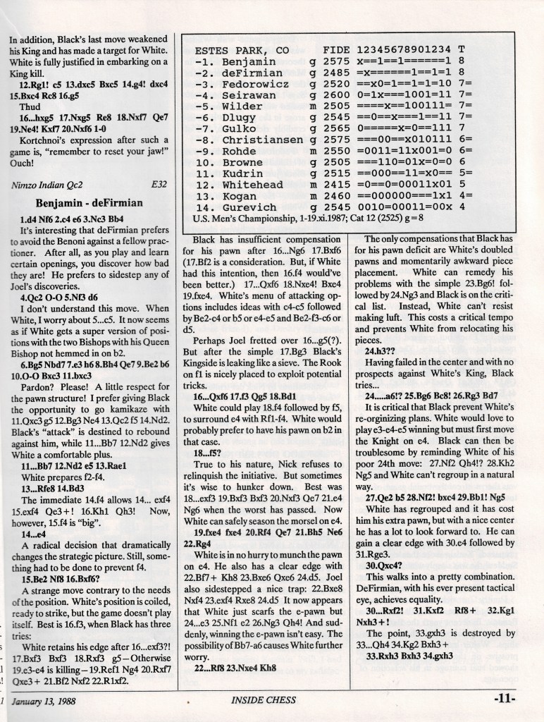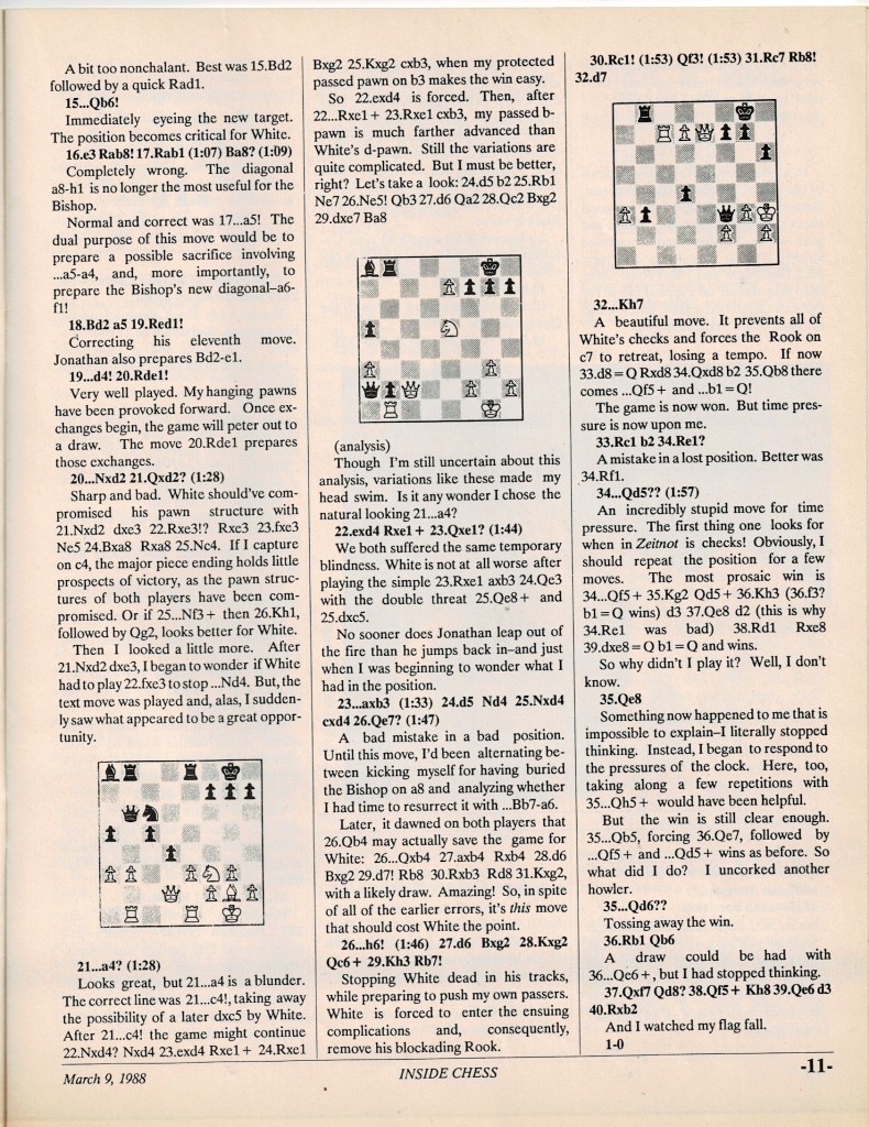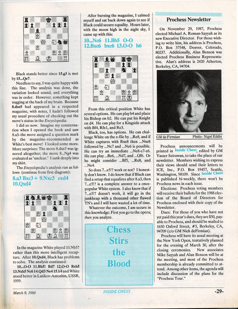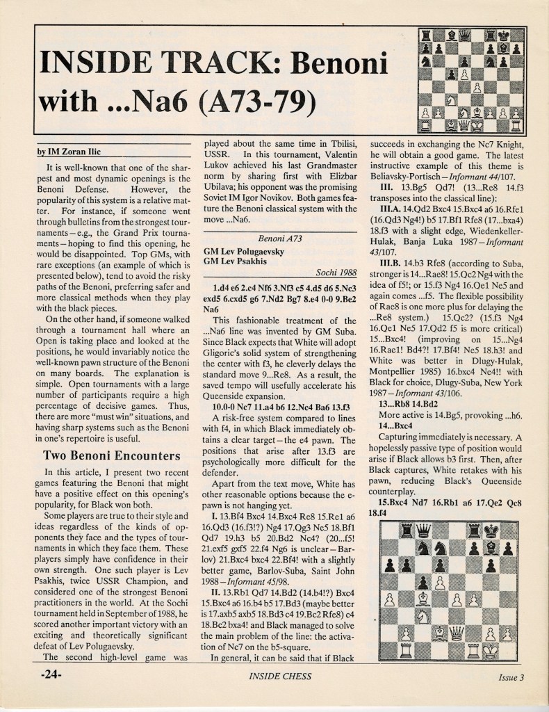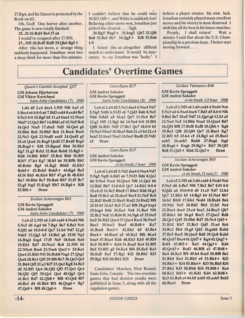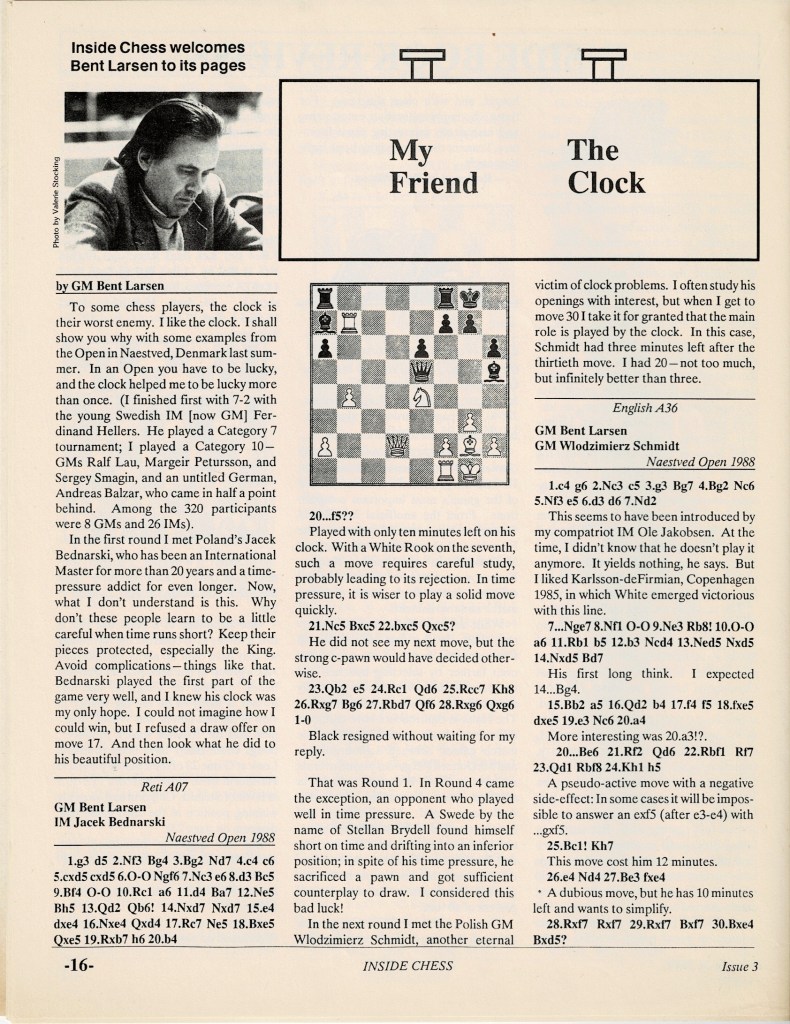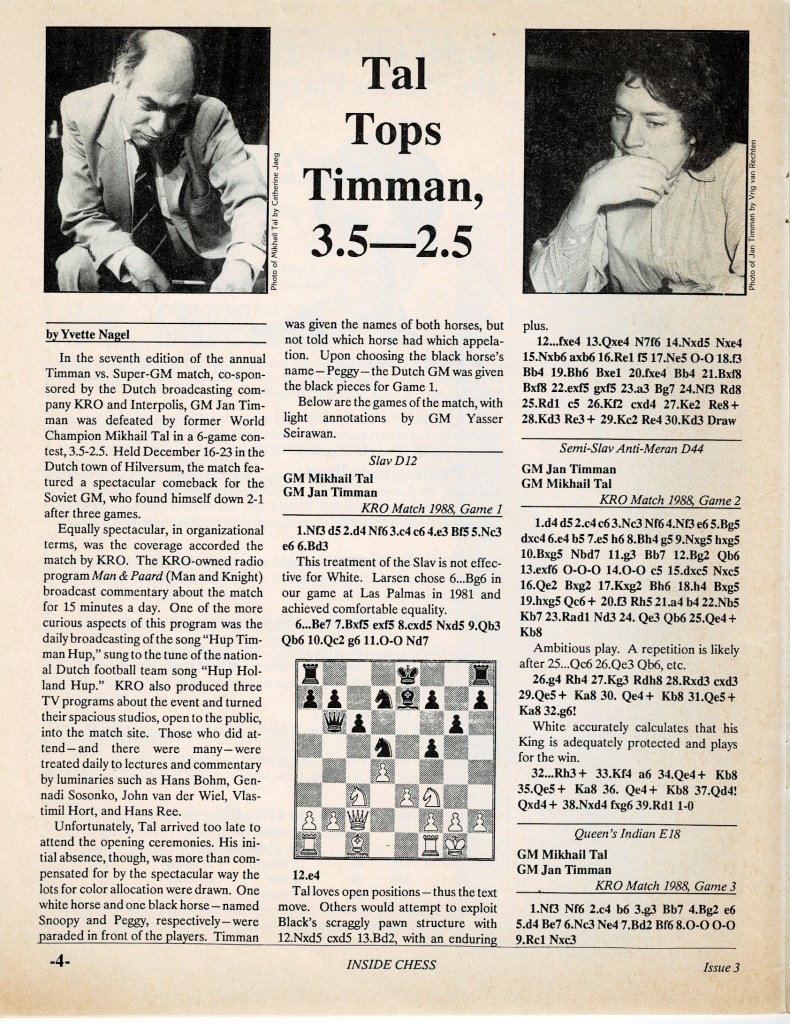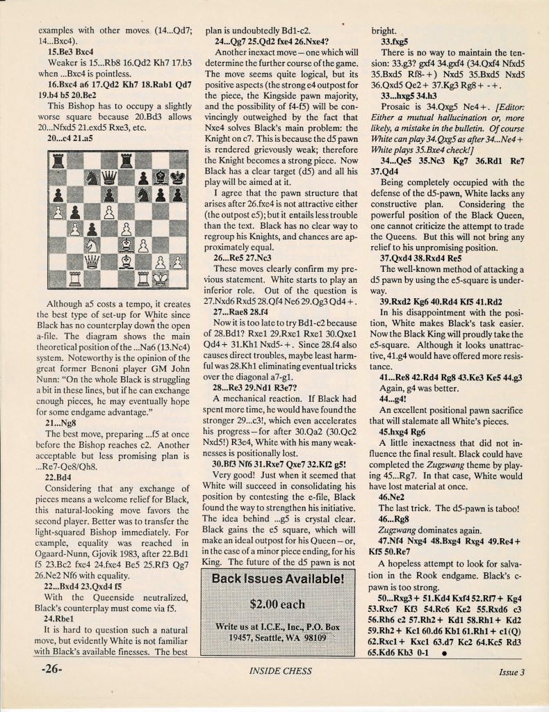 Annotated games and Opening/Endgame instructional articles by Masters of the past! Inside Chess from February of 1989.