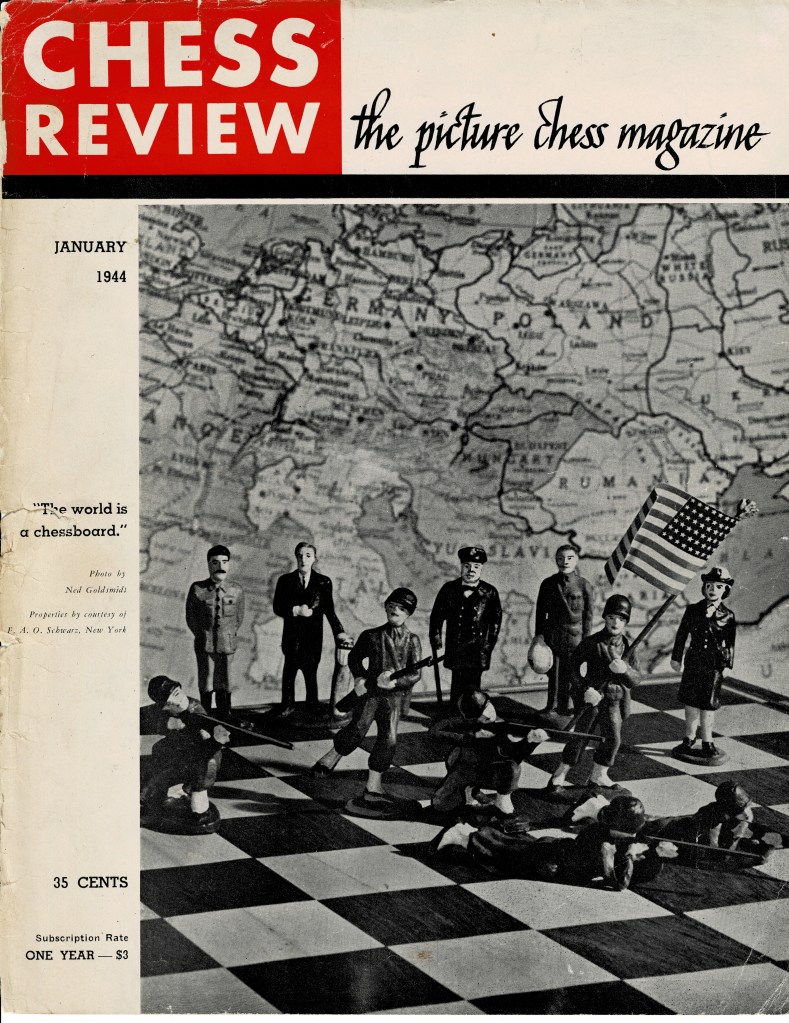 January 1944. World War 2 was entering it’s 5th year! The Allies were slogging their way up the boot of Italy. They had just made an amphibious landing at the seaside resort of Anzio, one of the most bloody and costliest battles of the Second World War. The cover of Chess Review reflects the times.