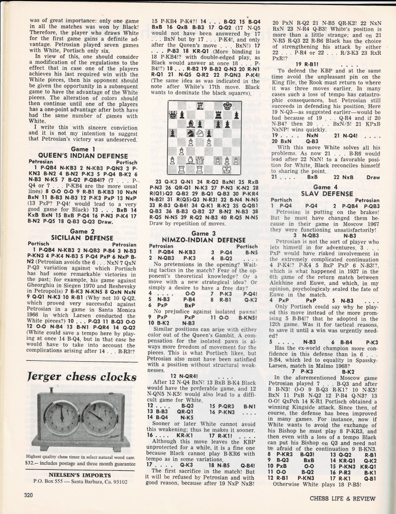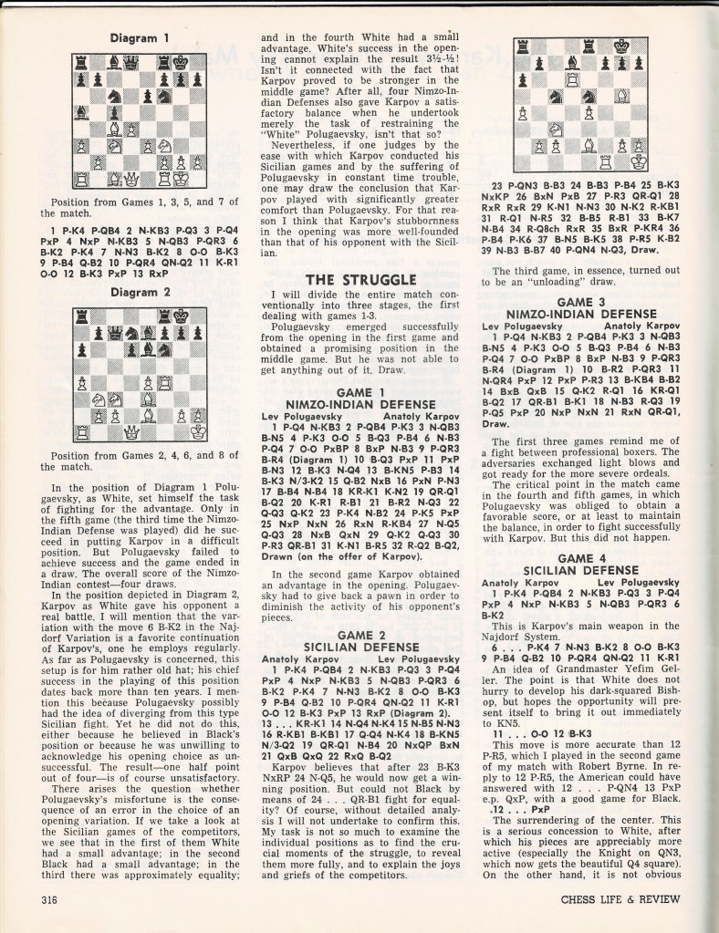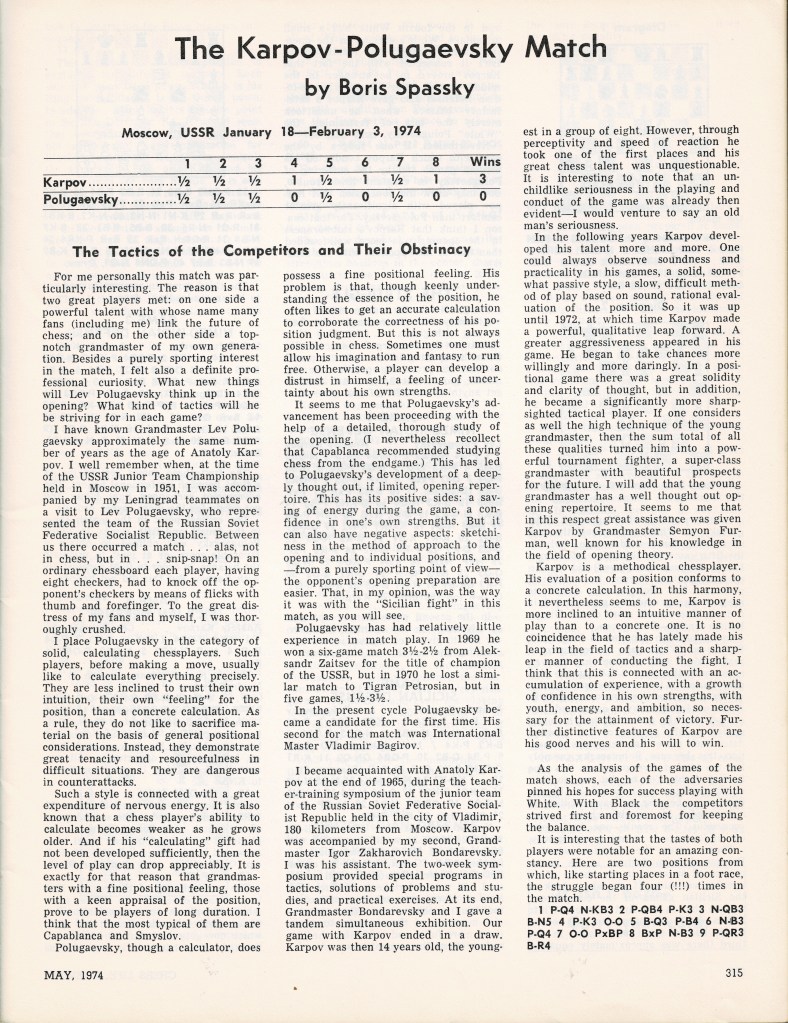 Then, from May 1974 Chess Life & Review we have the Karpov-Polugaevsky and Portisch-Petrosian Matches of the Candidates Cycle.